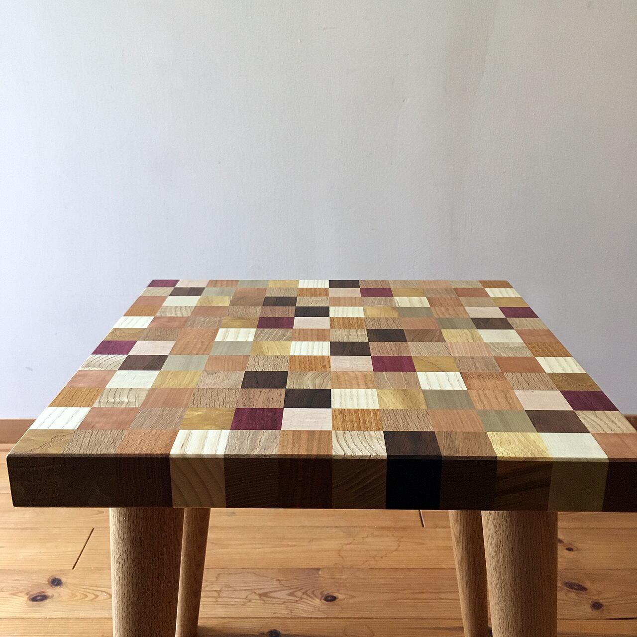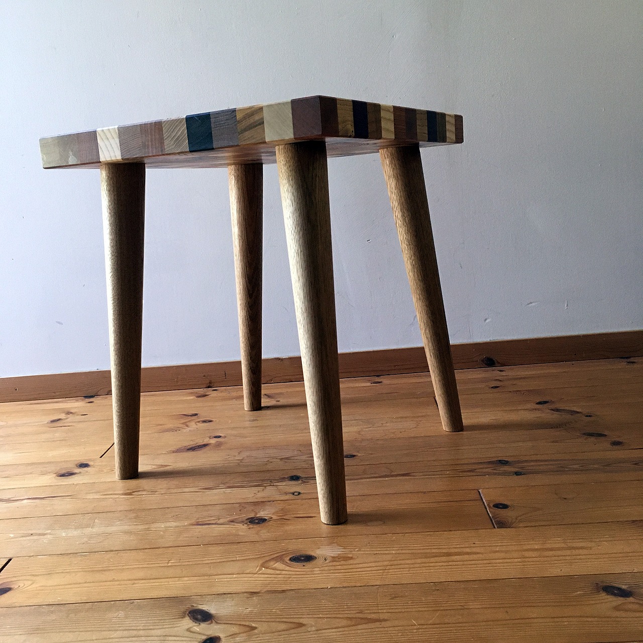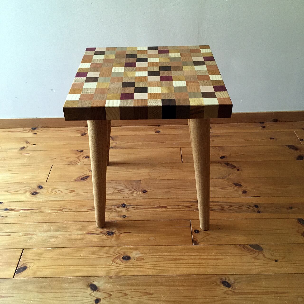 自然の色をそのまま使ったのモザイク調スツールです。